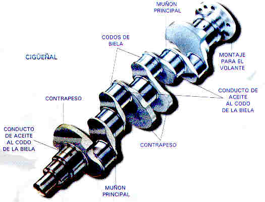 un eje acoplado, con codos y contrapesos presente en ciertas máquinas